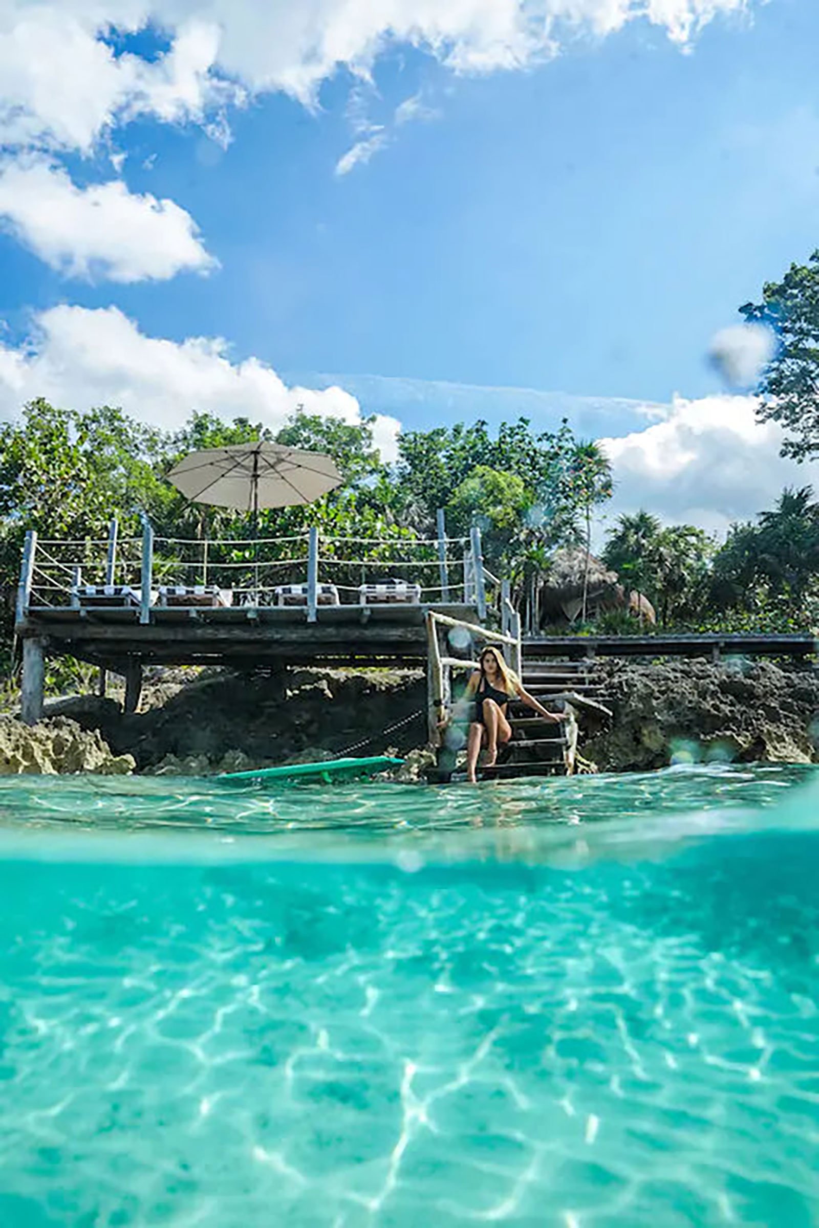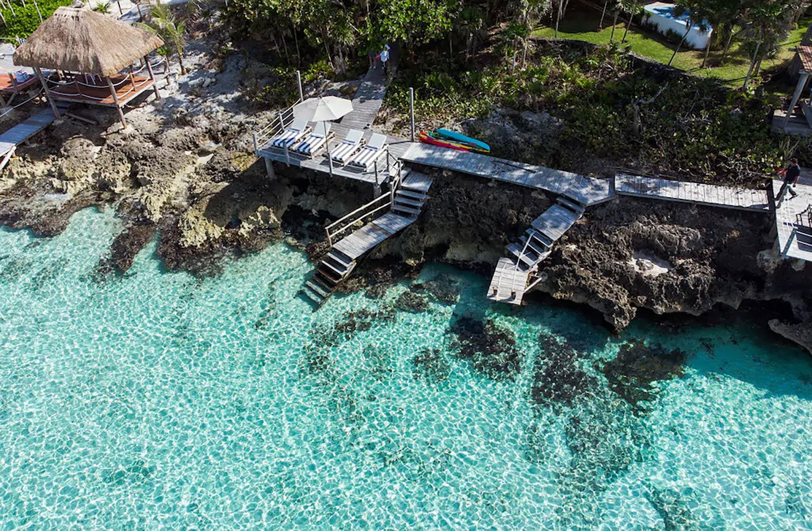 A 50-foot infinity pool is the centerpiece of this architecturally stunning private villa in Cozumel. Located right by the water, the villa boasts both exquisite interior design and unrivaled access to a prime snorkeling spot on the island’s west coast.